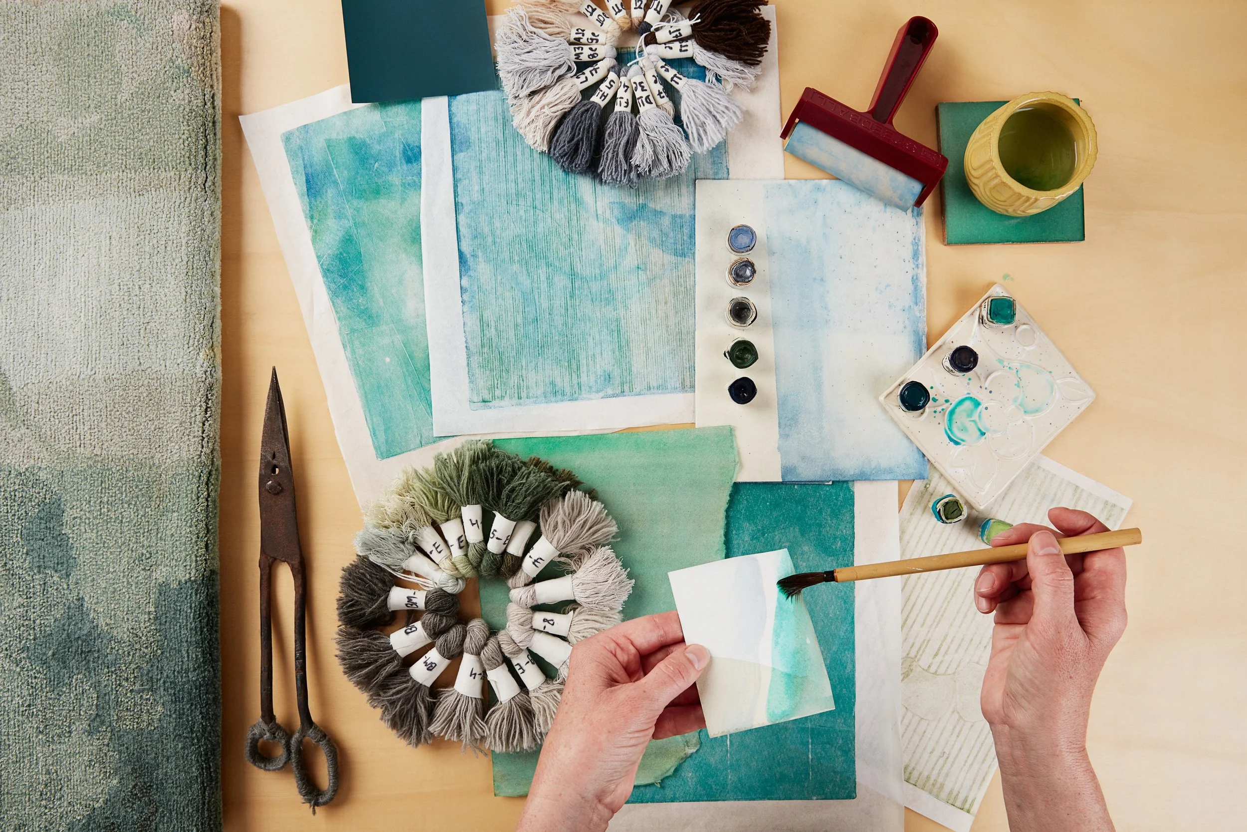 For Leah, translating a studio artwork into a carpet is a process that balances artistic intention with technical understanding. As she develops a design, she is already considering the colour palette and how it will correspond with the yarns selected for the final piece.
